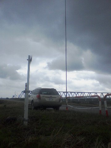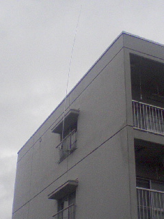 さっそく目立たぬ場所を選んで10mの釣竿を立ち上げアンテナをセット。
