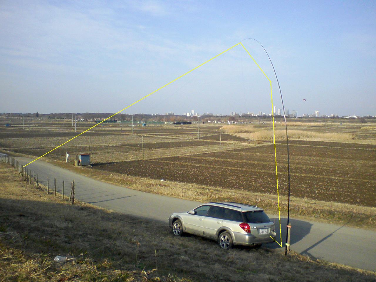 10m釣竿を立ててワッチするが、時間が遅かったこともあり14MHzCWでもあまり北米が聞こえてこない・・・