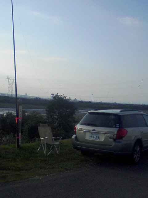 最後は、いつもの常念寺川の土手で10mの釣竿にロングワイヤーを引っ掛け&AH-4の移動運用。